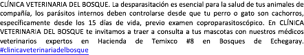 Te invitamos a desparasitar a tus animales de compañía, en CLÍNICA VETERINARIA DEL BOSQUE ofrecemos los mejores servicios